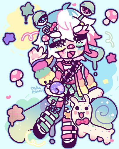 Shelby was once an average garden snail, slowly roaming around from plant to plant and enjoying the average amount of leafy snacking, until one day he roamed into a strange garden that almost seemed to draw him in. His hunger led him to the a strange glowing flower in the middle of this garden, which he climbed up and took a bite out of, and soon after began to glow himself. His body started to grow and shape into a more humanlike appearance, he had arms? And LEGS? His shell had also grown with him but seemed to pop off mid transformation. Shelby found the ability to speak, seemingly like he was able to all his life, his eye stalks remained and his body was still slimy to the touch, but he was able to wobble his way to his feet and look around.The garden when not viewed from the POV of a snail, was large, and was once beautiful, but was in heavy disrepair. The arch ways were crumbled in the statues that once adorned it was broken and reclaimed by nature, and the fountain nearby had dried up long ago. Shelby looked around at the flowers growing it in still, but noticed the only glowing one was barely hanging on to life from his sudden growth.He felt guilty, even if it wasn't his fault, and had taken on the new task for himself to help restore the garden and maintain it's magic as a form of repayment to the flower. And so he had started with getting clothing for himself, he learned that he had a few powers from the flower, one of which was the ability to communicate with other bugs, which helped with convincing some spiders to help make him clothing, and the other power was the ability to shift into his snail form and back to his human form with ease.He worked tirelessly, slowly gathering wood to restore an arch, and trying his best with his minimal building ability, and after several days he was ability to fix one arch, he was happy, but felt his job was far from done. It was not too lonely work with the ability to talk to bugs, all while doing his best to protect the glowing flower from the elements and caring for it.Aside from the bugs, occasional bird and himself, no other being visited the garden, which all changed when Shelby noticed a light whining sound coming from nearby. A small injured puppy had made is way to the garden, the same way he wandered in, he suspected this puppy had been drawn in as well by the magic of the garden. Shelby felt what seemed to a faint whisper, inaudible and indiscernible, but a whisper that guided him to the flower once more. He carried the puppy to it, and had felt like he needed to feed it a petal, like the flower was offering its help. Shelby held the puppy close and allowed it to chew on a petal, and much like what happened to Shelby, the puppy transformed into a snail-dog hybrid! Now healed of its injuries. Shelby hugged the little dog close, thanked the flower, and decided this lil guy would be his best friend while he works the garden, something just like him. He had named the new snail-dog, Sheldon.Shelby has continued working on the garden since then, and has made a goal of bringing in other beings to hopefully see the garden's magic fully bloom once again, he has taken up streaming to make new friends to help tend to the garden and restore it's beauty fully one day!